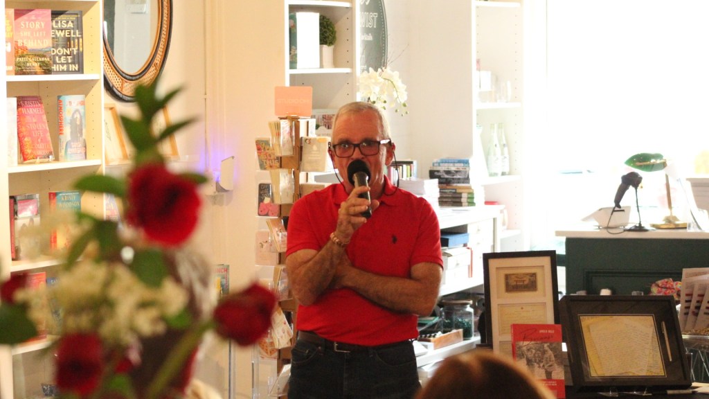 Last night, Brenda and I hosted another author event that I never wanted to end. Relatives, friends, former high school classmates, Vietnam War veterans, and readers of the Atlanta Journal-Constitution (AJC), who had read Book Critic Suzanne Van Atten’s feature story in the Father’s Day edition, spent over two hours discussing my investigative memoir, Because: A CIA Coverup and a Son’s Odyssey to Find the Father He Never Knew, at Myrtle’s Plot Twist in Griffin, GA. We spent the evening together, enjoying food and drinks while sharing laughter and tears. The staff at Myrtle’s, William and Brittany, took great care of us.