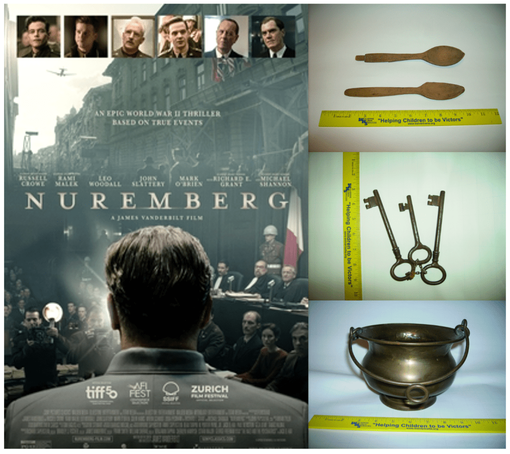 In our family’s possession are several items of significance: wooden spoons that belonged to one or more of the Nazi prisoners, keys to the cells where the war criminals were held, and a holy water bucket (called an aspersorium) used by the U.S. Army Chaplain and Lutheran priest Hency Gerecke, who sprinkled holy water on some of the Nazis before their executions.
