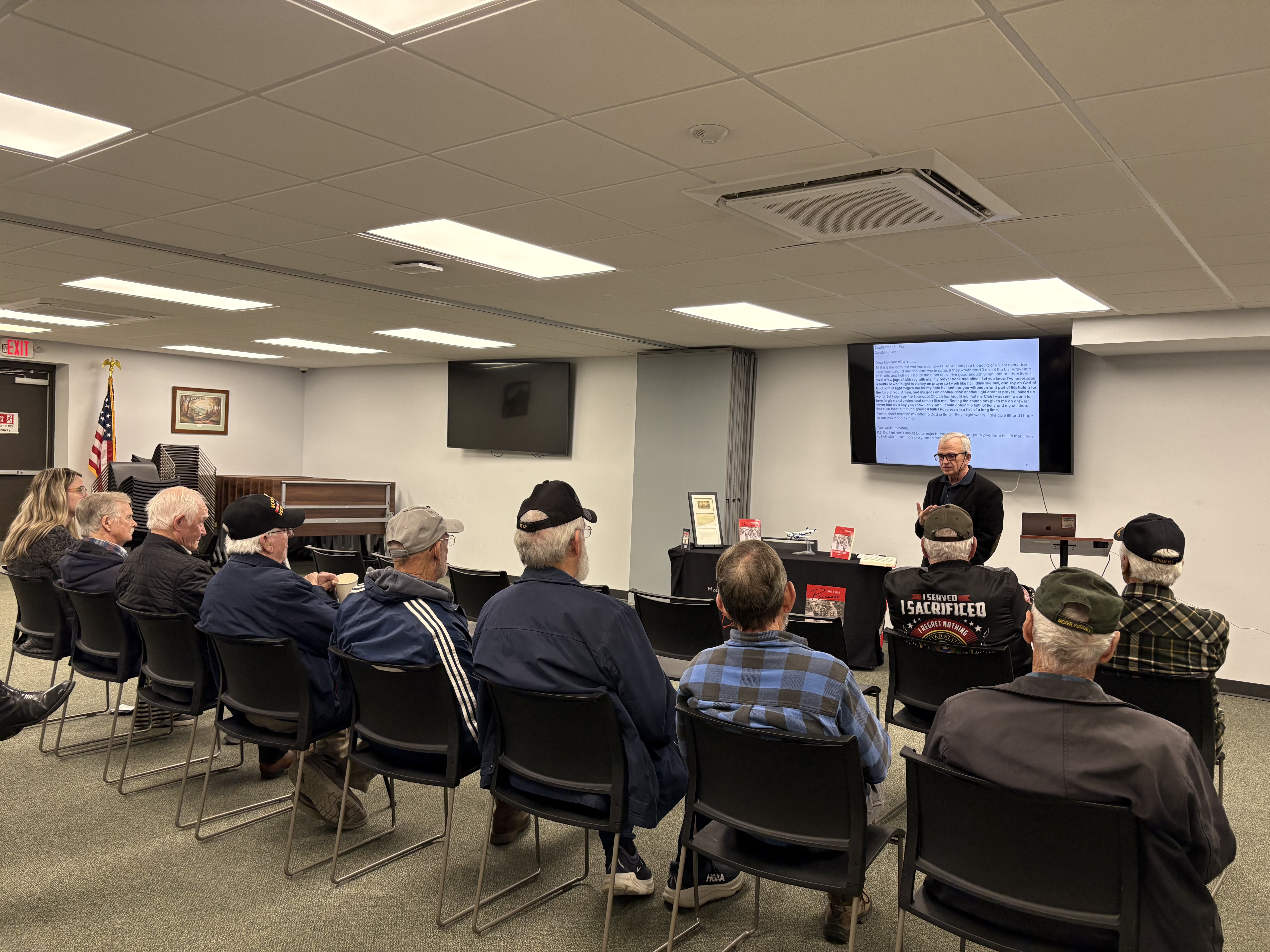 My presentation was followed by a healthy discussion, which, incredibly, led some vets to volunteer to tell, for what I suspect was the first time, and subsequently weep about things they had done or witnessed.