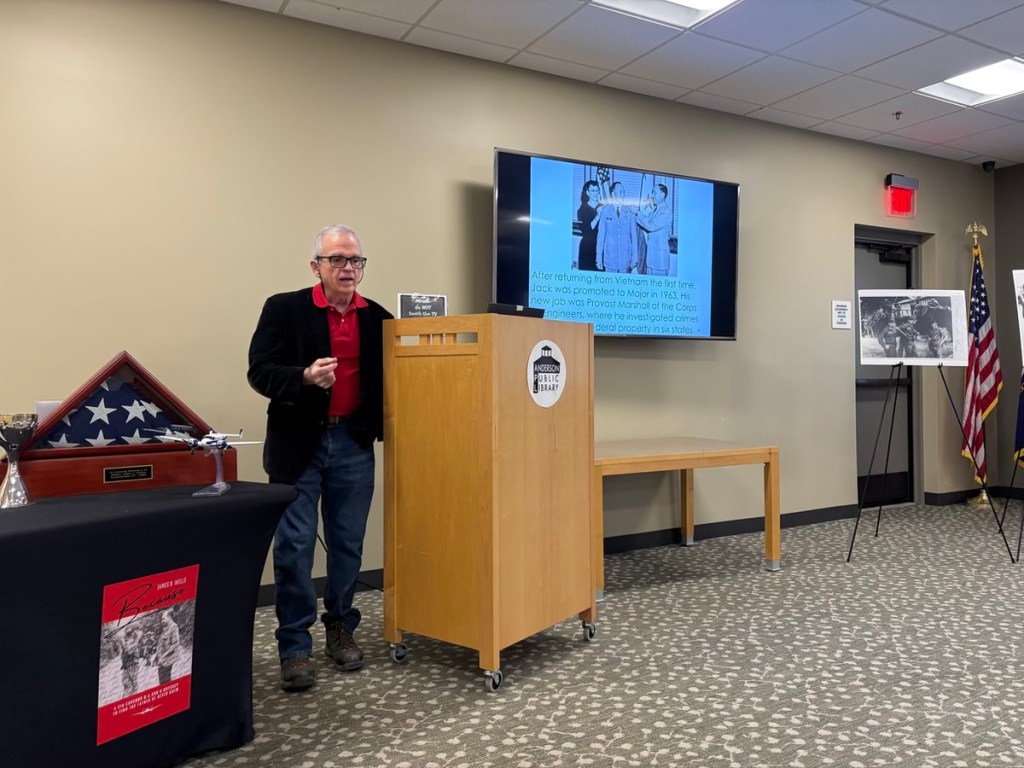 We want to thank the Anderson County Public Library for hosting our second 2026 author event. What Brenda and I enjoy most about these events is talking with attendees and learning what prompted them to come hear me discuss my award-winning investigative memoir, Because: A CIA Coverup and a Son’s Odyssey to Find the Father He Never Knew. Every story we hear touches us deeply.